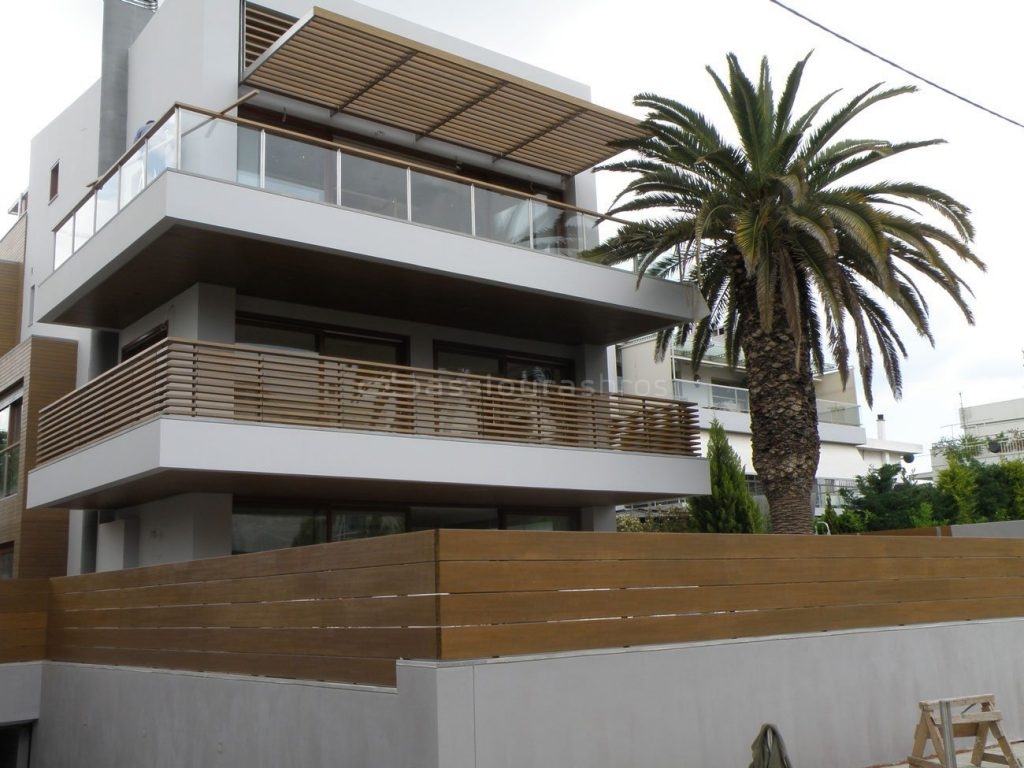 Εξωτερική επένδυση με ξυλεία Κόκκινου Κέδρου, με κρυφή στήριξη και επεξεργασία για χρήση σε εξωτερικό χώρο. Με άψογη τεχνική, δυναμικές γραμμές και επιλεγμένα φυσικά υλικά, η κατασκευή ενσωματώνεται εντυπωσιακά στο περιβάλλον.