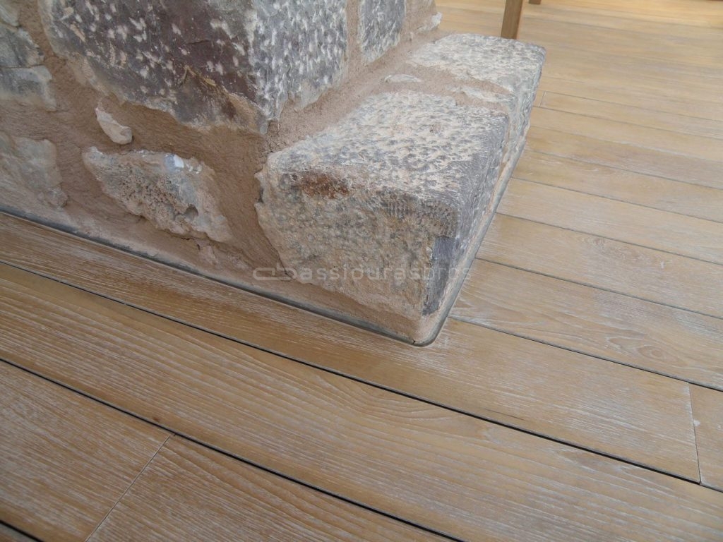 Δάπεδο εξωτερικού χώρου (deck) από ξυλεία Teak Burma FEQ, με πλάτος σανίδων 140 mm. Το έργο βρίσκεται στην περιοχή της Μάνης, επομένως έπρεπε να λάβουμε υπόψη την πλήρη έκθεση στις δύσκολες συνθήκες της περιοχής. Πέντε έτη μετά την ολοκλήρωση της κατασκευής, το deck παραμένει λειτουργικό και πάντα όμορφο. Δόθηκε ένα ιδιαίτερο τελείωμα με μασίφ χαλκό στη συναρμογή με τον πέτρινο τοίχο. Μια κατασκευή για τον ιδιαίτερα απαιτητικό μηχανικό-αρχιτέκτονα κο Κων. Ζούβελο.