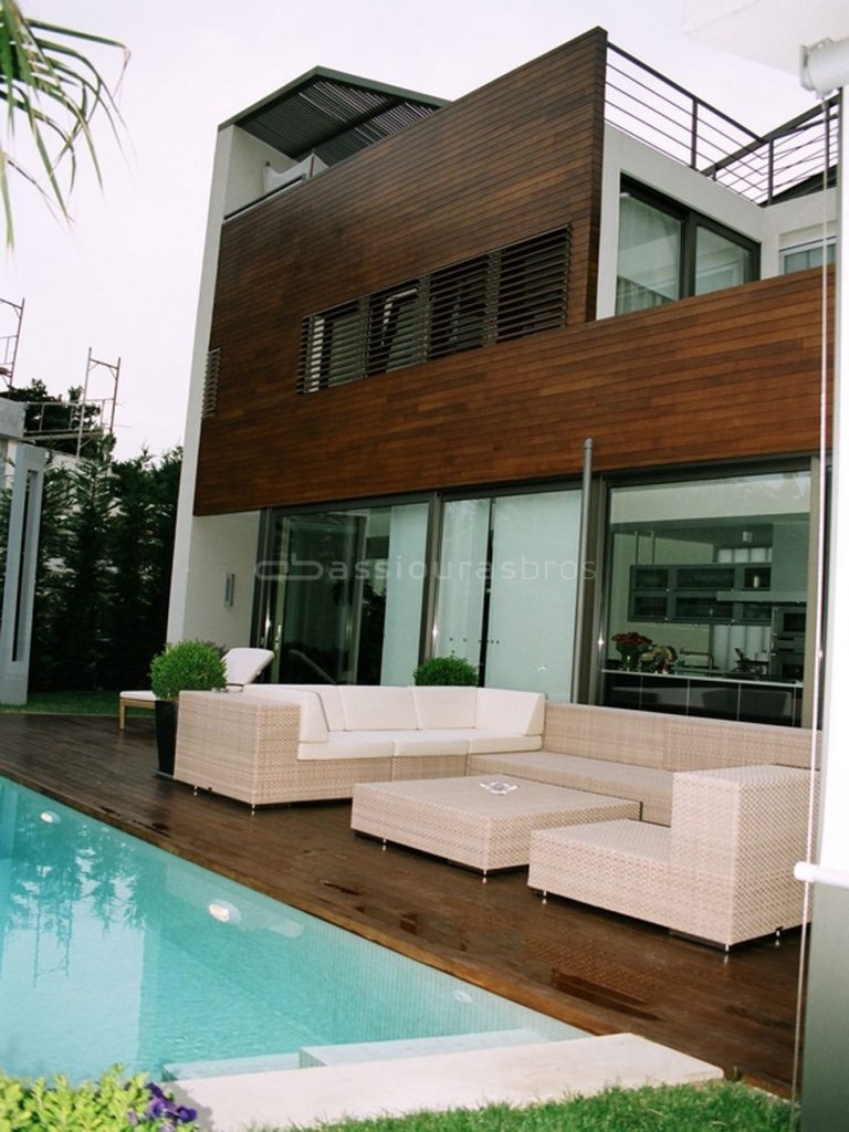 Διάφορα ξύλινα δάπεδα εξωτερικού χώρου (deck) από διαφορετικά είδη ξυλείας. Η υποδομή αποτελείται από οδηγούς σκληρής ξυλείας Ιρόκο και, στις περισσότερες περιπτώσεις, επάνω σε ρυθμιζόμενες βάσεις δαπέδου Impertek Megamart. Η στήριξη είναι κρυφή και ο χρωματισμός σε φυσική μορφή, με επεξεργασία λαδιού ή και με φυσική παλαίωση.